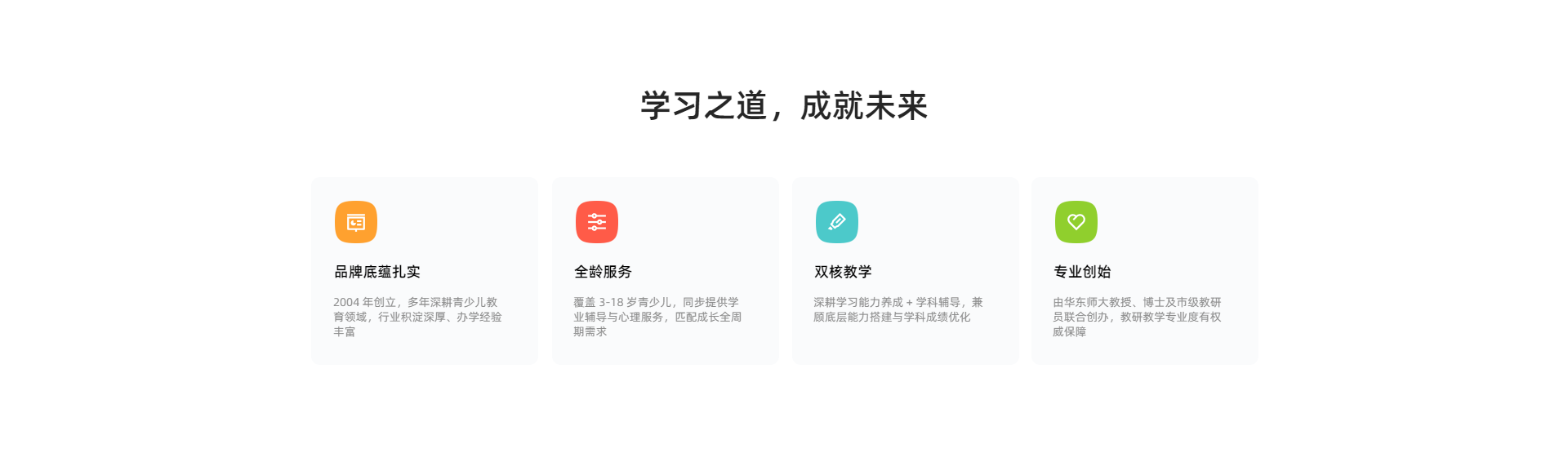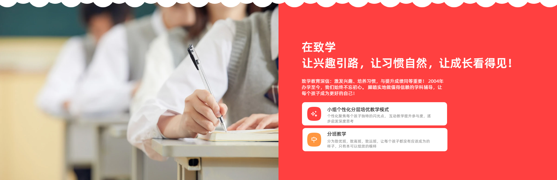 &emsp&emsp致学教育成立于2004年,是一家致力于为中国3-18岁青少儿家庭提供小组个性化学业与心理服务的专业教育机构。专业从事3-18岁青少儿学习能力养成与学科辅导。由华东师范大学教授、博士与市级教研员共同创办。